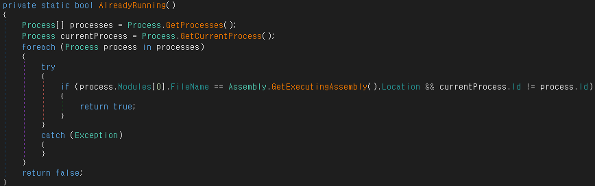 현재 실행되고 있는 프로세스 확인을 통하여 중복실행을 방지합니다.