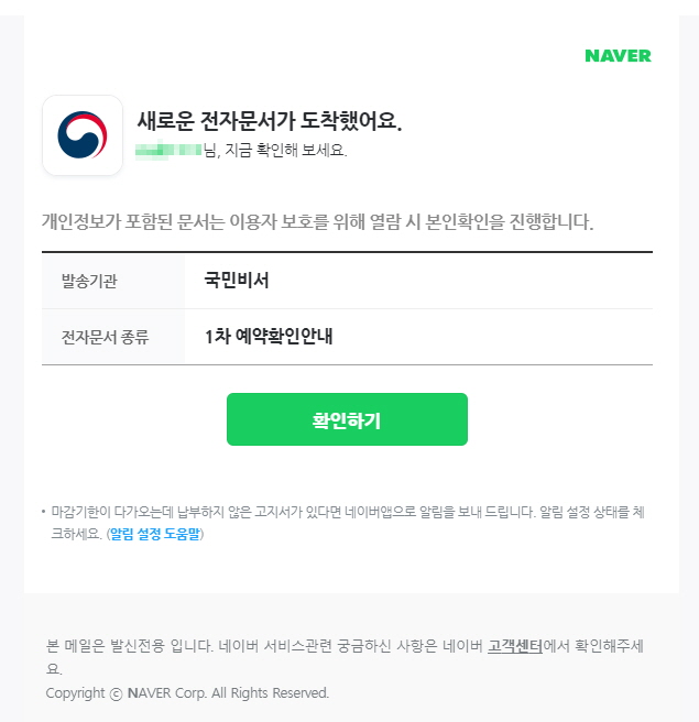 최근에는 '새로운 전자문서가 도착했어요'라는 제목과 함께 국민비서 백신 1차 예약확인을 위장한 피싱메일도 유포되고 있어 사용자들의 각별한 주의가 필요합니다.