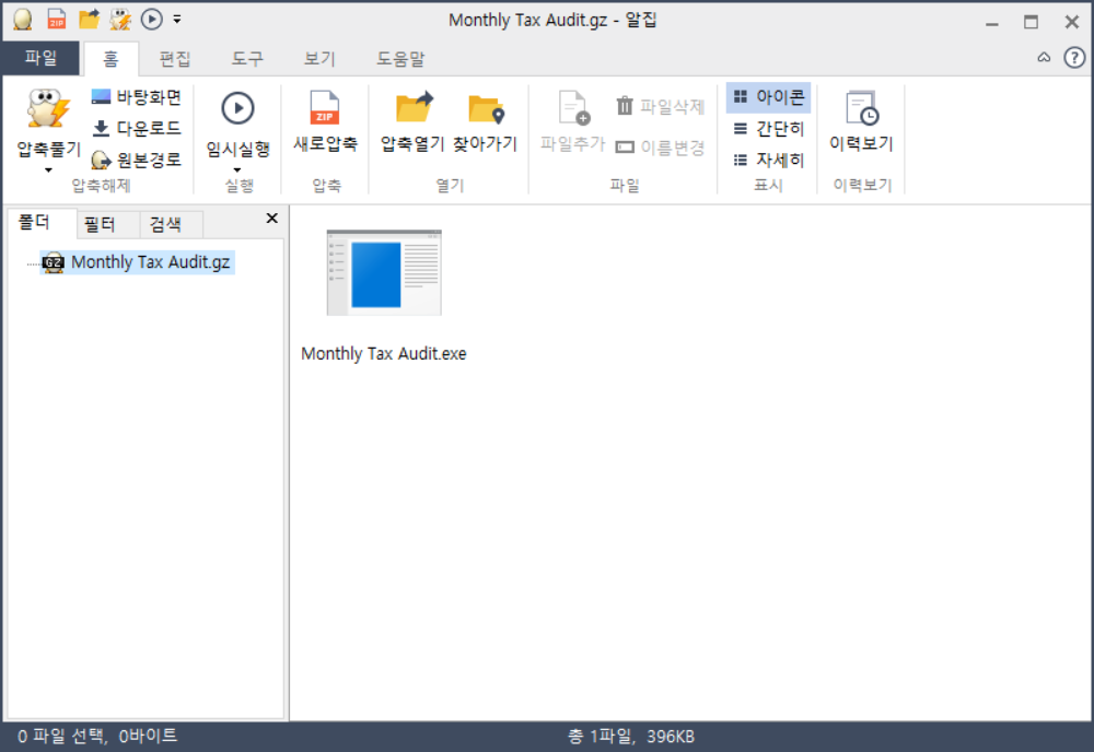 이메일에 첨부되어 있는 압축파일 안에는 Monthly Tax Aduit 파일명을 가진 실행파일이 포함되어 있습니다.