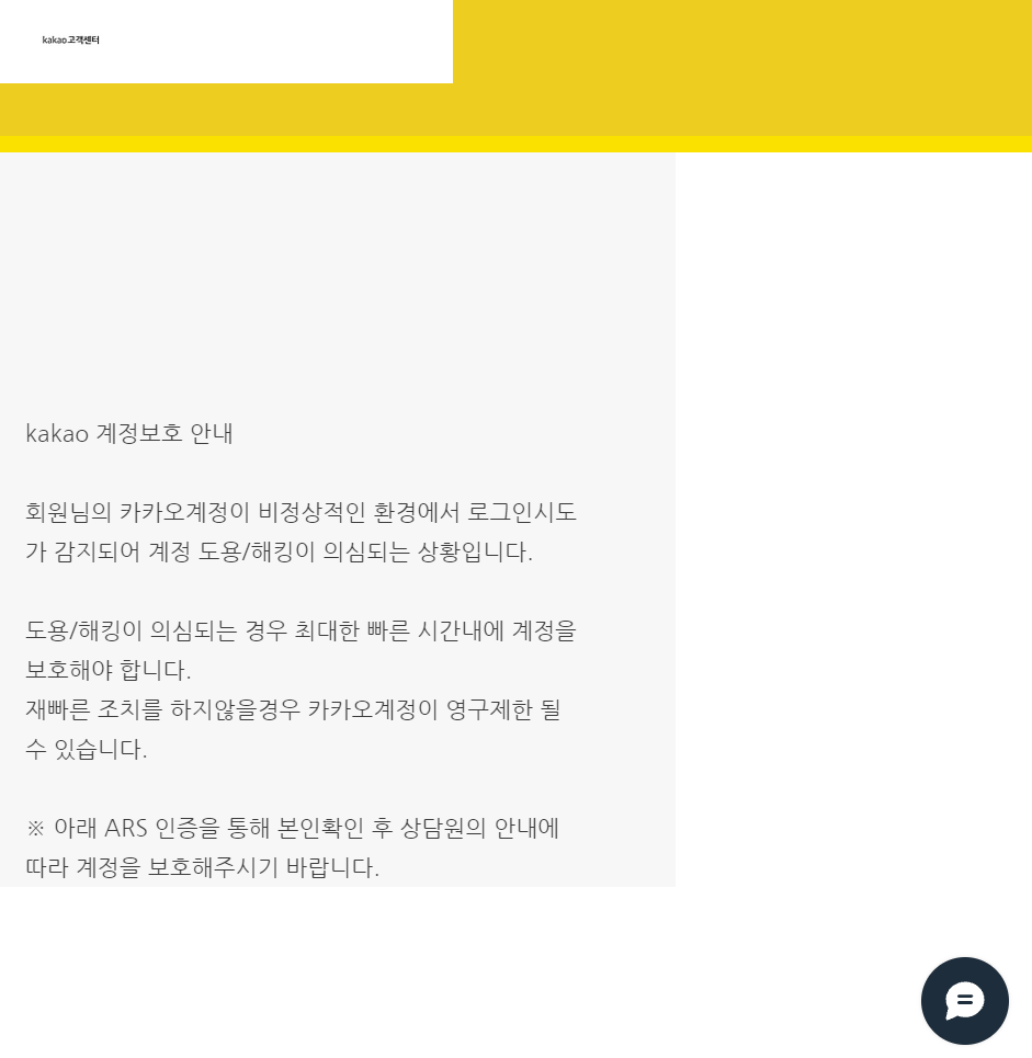 회원님의 카카오계정이 비정상적인 환경에서 로그인 시도가 감지되어 보호조치 될 예정입니다.