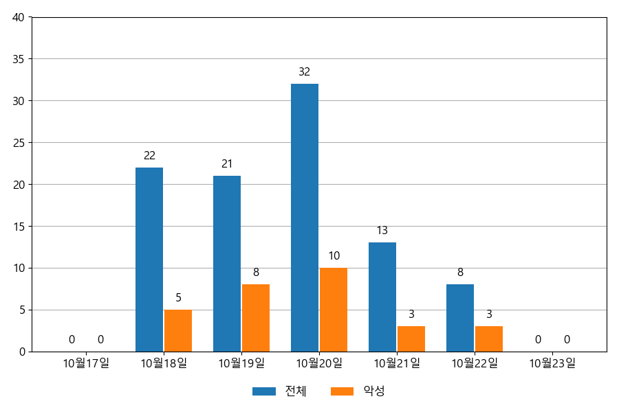 일일 유입량은 하루 최저 8건(악성 3건)에서 최대 32건(악성 10건)으로 일별 편차를 확인할 수 있습니다.