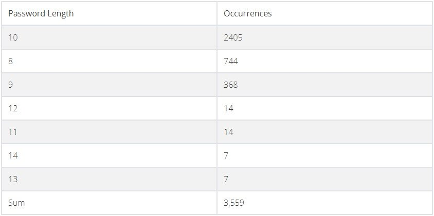 이를 통해 또 다른 비밀번호 1,359건이 빠르게 복호화 되었습니다. 이들 중 대부분은 소문자만 사용했습니다.