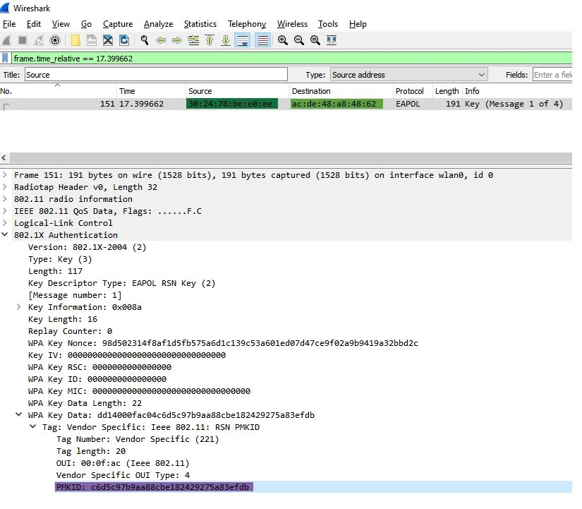 그 후, 그는 흔히 로밍 목적으로 생성되는 PMKID 해시를 검색할 수 있는 취약점을 악용했습니다.