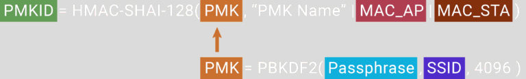 PMKID 해시는 네트워크의 SSID, 암호, MAC 주소, 정적 정수로 구성됩니다.