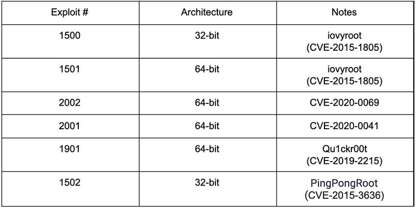 "AbstractEmu는 제로 클릭 원격 익스플로잇을 악용하지 않고, 더 많은 기기를 노리기 위해 2019년과 2020년 발견된 비교적 최신 취약점 (CVE-2020-0041, CVE-2020-0069, CVE-2019-2215 and CVE-2020-0041) 을 악용합니다.”