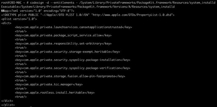 따라서 Apple에서 서명한 패키지가 설치될 때 system_installd 데몬을 호출하고, 이 데몬은 macOS의 Z 셸(zsh)인 기본 셸을 호출하여 해당 패키지에 포함된 post-install 스크립트를 실행합니다.