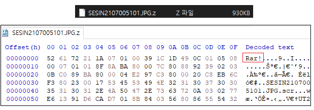 해당 파일의 확장자는 .scr 파일이지만, 실제로는 압축파일로 압축파일 내에는 다음과 같이 여러개의 파일들이 포함되어 있습니다.