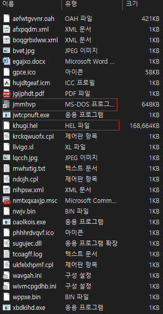 해당 파일의 확장자는 .scr 파일이지만, 실제로는 압축파일로 압축파일 내에는 다음과 같이 여러개의 파일들이 포함되어 있습니다.