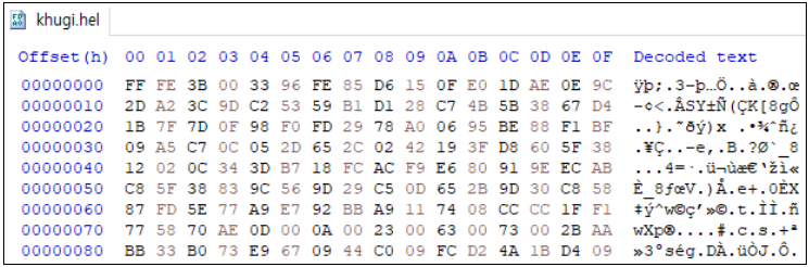 하지만 사용자는 압축파일인지 확인하기는 힘들며, 다운로드 된 .scr 파일을 더블클릭하면 자신을 레지스트리에 등록하고 Update.vbs 파일을 생성하고 최종적으로 특정 파일(jmmhvp.pif)을 통해 난독화된 파일(khugi.hel) 읽어와 악성 행위를 수행합니다.