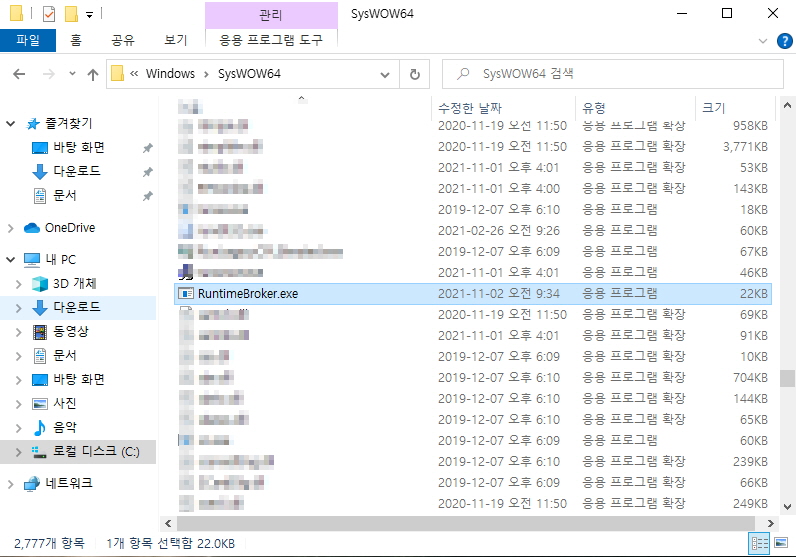 해당 파일은 iframe으로 페이지 내 삽입되어 있으며, 자동으로 내려온 vcredist_2010.exe 파일을 실행하면 추가로 RuntimeBroker.exe 파일을 C:\Windows\SysWOW64폴더 하위에 저장하고 자동으로 실행합니다.