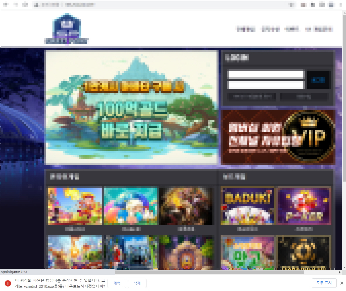 접속 시 자동으로 파일이 다운로드 되는 도박사이트가 발견되어 사용자들의 주의가 필요합니다.