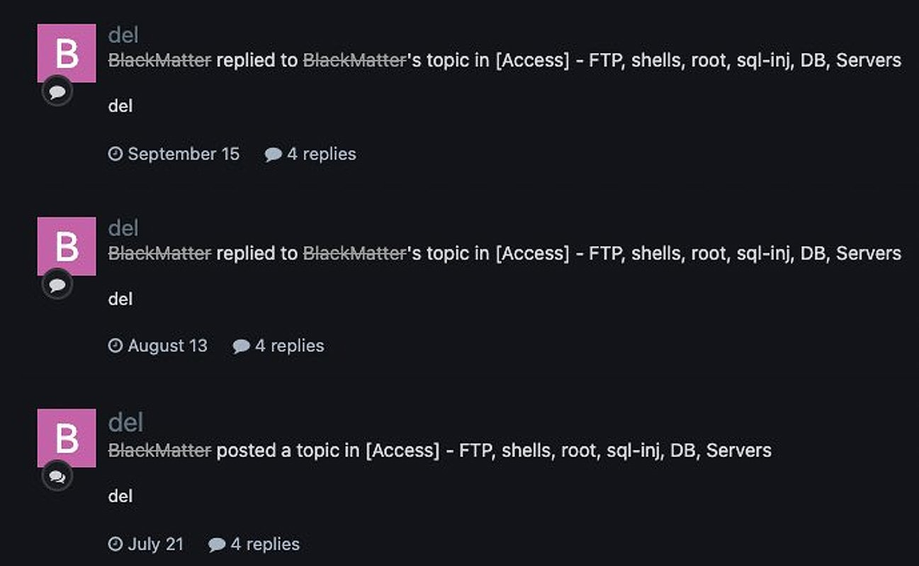 BlackMatter는 현재도 계속해서 운영 중단 작업을 진행 중입니다. 오늘은 러시아어를 사용하는 해킹 포럼에서 그들의 흔적을 삭제했습니다.