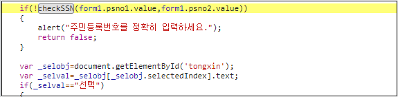 이때 앱 내부에서 주민등록번호의 패턴을 검사하기 때문에, 만일 사용자가 주민등록 패턴에 맞지 않은 임의의 7자리 숫자를 입력하면 주민등록번호를 제대로 입력하라는 창이 뜹니다.