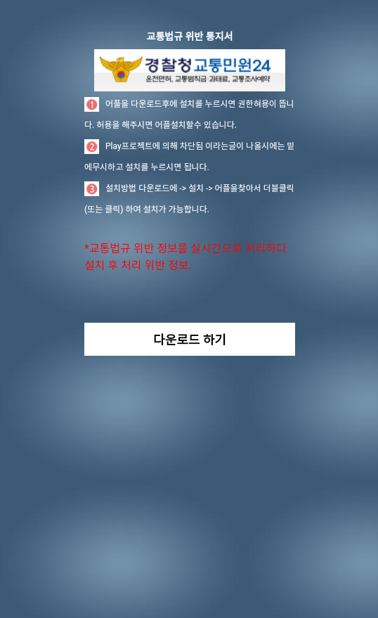23일부터 교통법규 위반 내용으로 스미싱이 대량으로 유포중에 있어 사용자들의 주의가 요구됩니다.