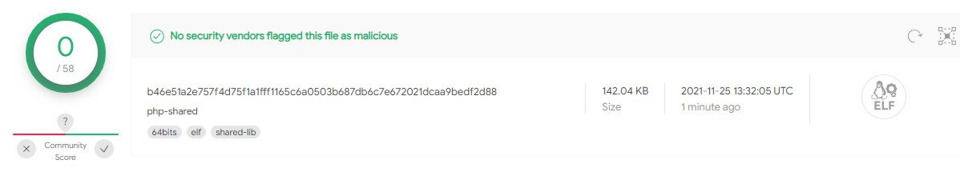 이러한 모든 기능으로 인해 CronRAT는 거의 감지되지 않습니다. VirusTotal에서 안티바이러스 엔진 12개는 악성 파일을 처리하지 못했으며 58개는 위협으로 탐지하지 못했습니다.