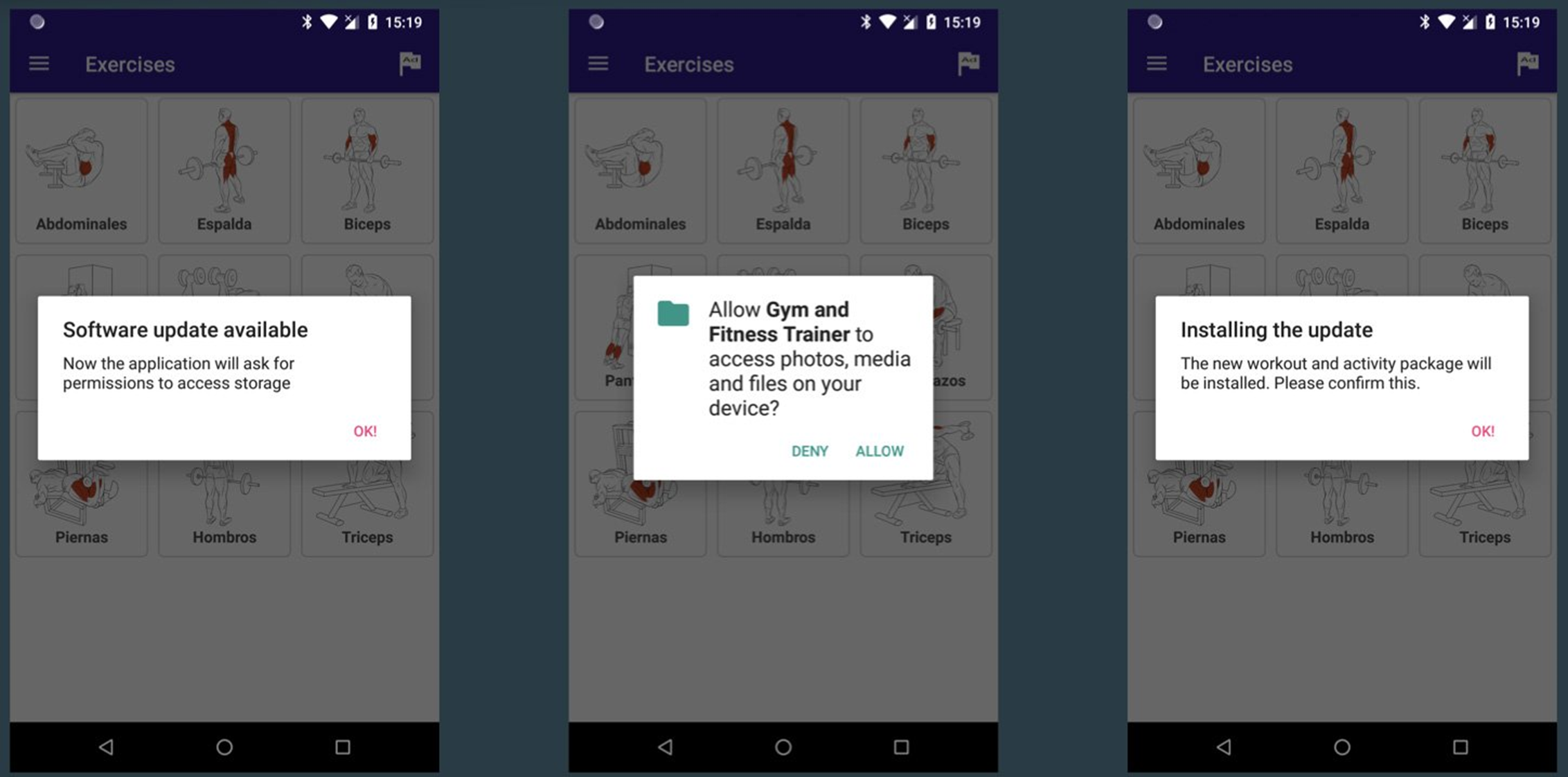 하지만 이러한 "드로퍼" 앱이 설치되면 공격자의 서버와 조용히 통신하여 명령을 수신합니다. 뱅킹 트로이 목마를 배포할 준비가 되면 공격자의 서버는 설치된 앱에 안드로이드 기기에서 악성코드를 업데이트 및 실행하는 가짜 "업데이트"를 수행하도록 지시합니다.