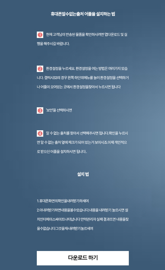 이름과 생년월일을 입력하면 실제 악성앱을 내려받을 수 있는 페이지로 이동합니다.