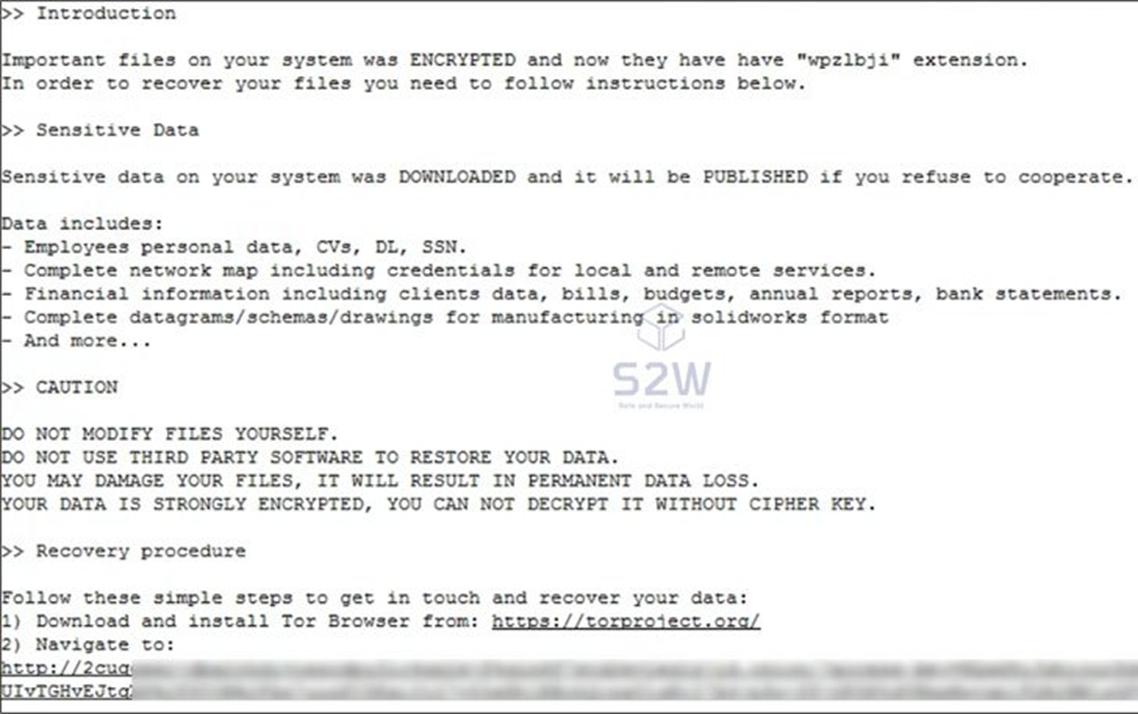 지금까지 확인된 피해자는 2명으로, 초기 랜섬웨어가 기업을 노린 실제 공격에 적극적으로 배포되고 있음을 알 수 있습니다.