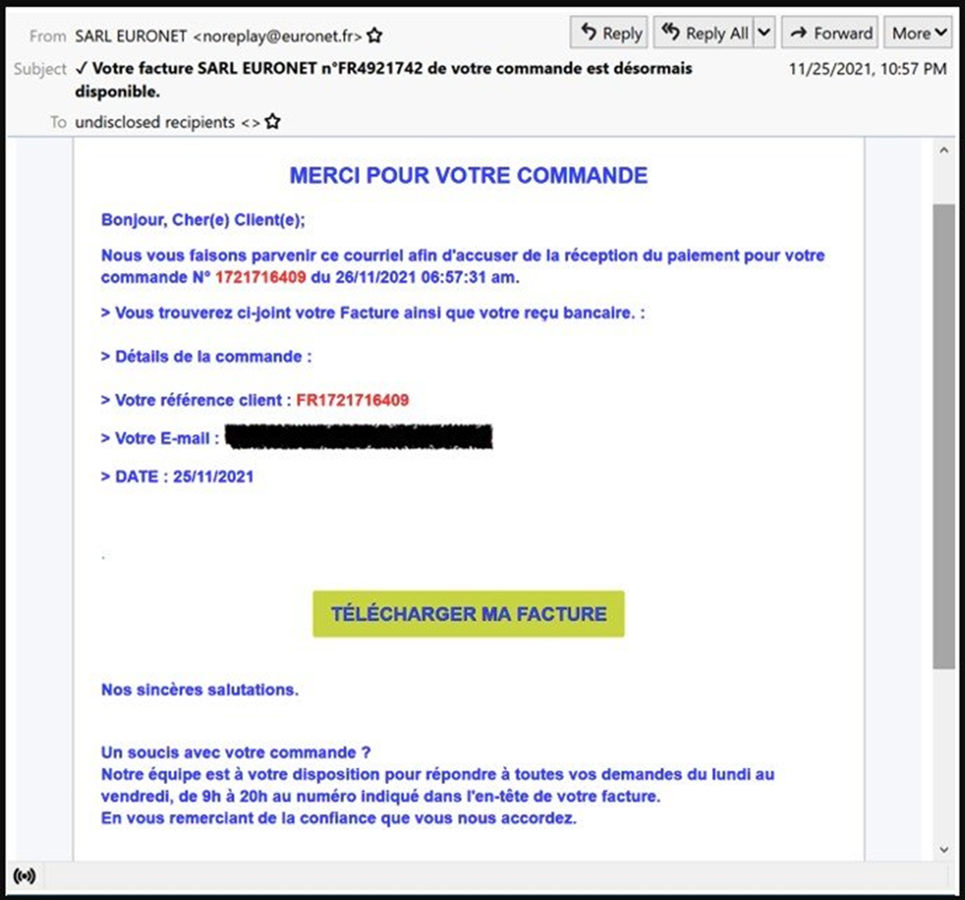 인포 스틸링 악성코드인 TinyNuke가 프랑스 사용자들을 노리는 새로운 캠페인을 통해 재등장했습니다. 이들은 제조, 기술, 건설, 비즈니스 서비스의 개인 및 회사 이메일 주소로 인보이스로 위장한 피싱 이메일을 전송했습니다.