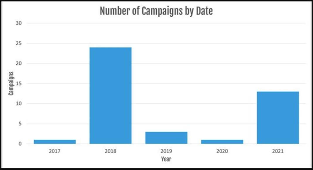 TinyNuke 악성코드는 2017년에 처음 발견되어 2018년 정점에 이르렀다가 2019년에 크게 감소했으며 2020년에는 거의 사라졌습니다.