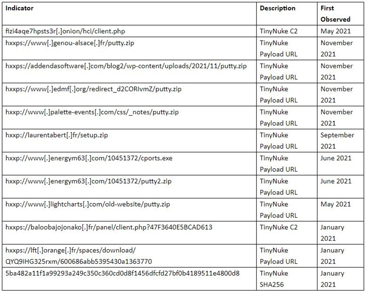 <최근 TinyNuke 캠페인에 대한 침해 지표>