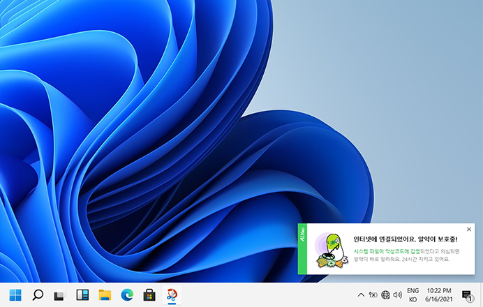 시스템 파일이 악성코드에 감염되었다고 의심되면 알약이 바로 알려줘요. 24시간 지키고 있어요.