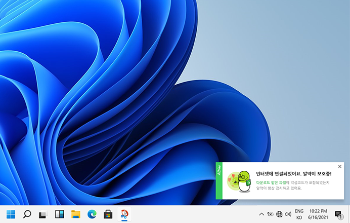 기존에는 단순히 인터넷 연결이 되었음을 안내하는 내용이었다면, 위와 같이 개선된 팝업을 통해서는 ‘다운로드 받은 파일의 악성 여부를 감시하고 있어요’, ‘악성코드에 의해 호스트 파일이 변조되면 알약은 사용자에게 바로 알려줘요’ 와 같은 문구를 통해 내 PC가 어떻게 보호받고 있는지 확인할 수 있습니다.