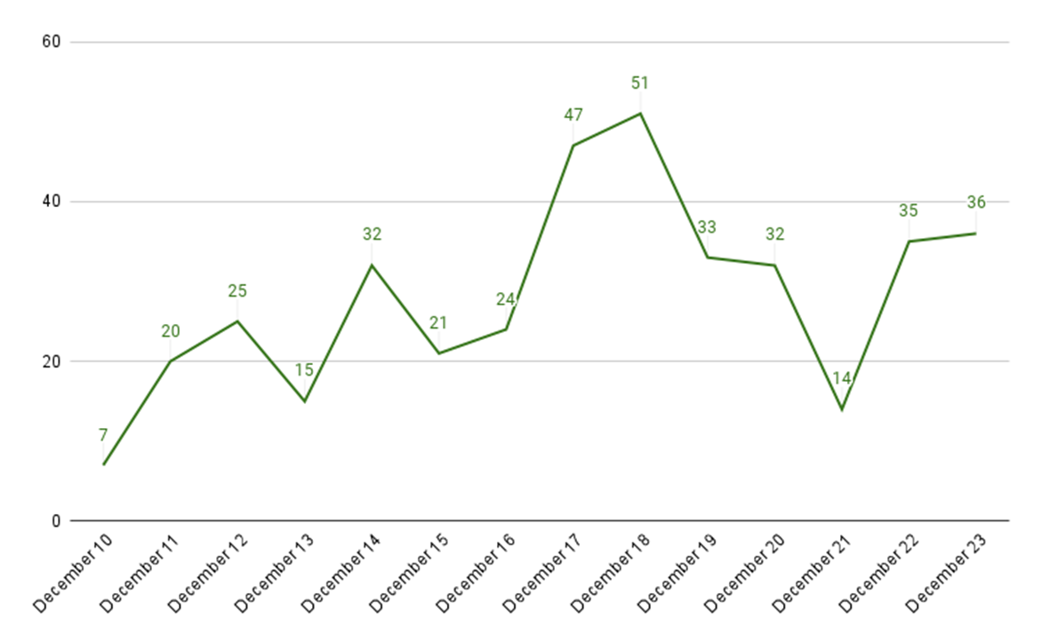 Dr. Web은 Log4J 취약점이 온라인에 노출된 시스템에 미치는 영향을 분석하기 위해 허니팟을 설치했으며, 12월 17일에서 20일 사이에 이들이 활발히 활동한 것을 발견했습니다.