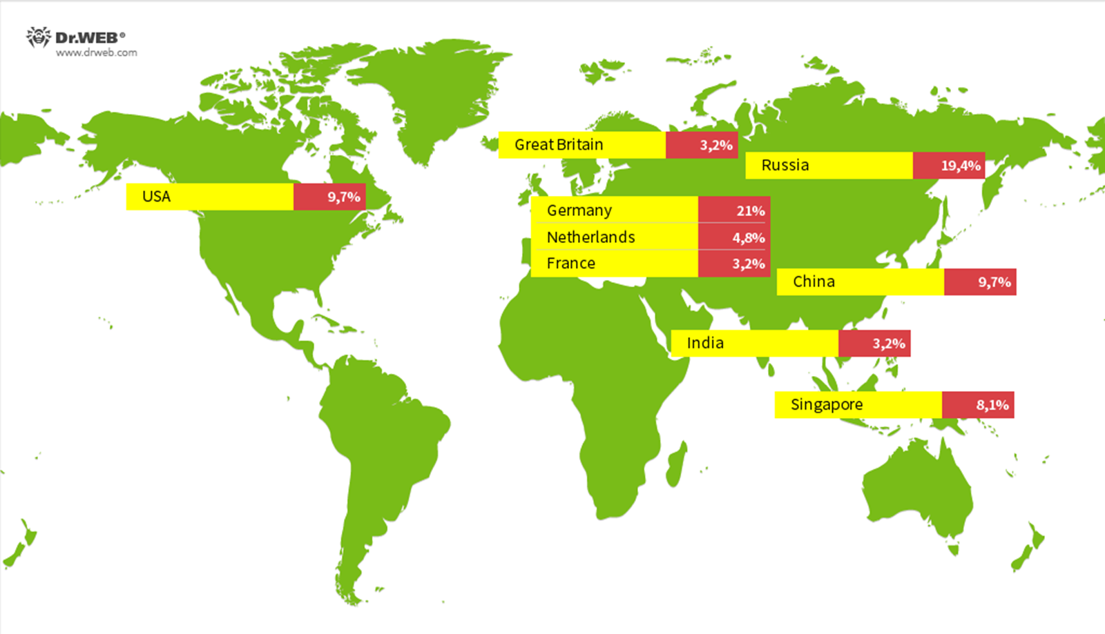 공격은 서로 다른 IP 주소 72곳에서 수행되었으며, 대부분 독일(21%)의 IP였으며 러시아(19.4%), 미국 및 중국(9.7%)이 그 뒤를 이었습니다.