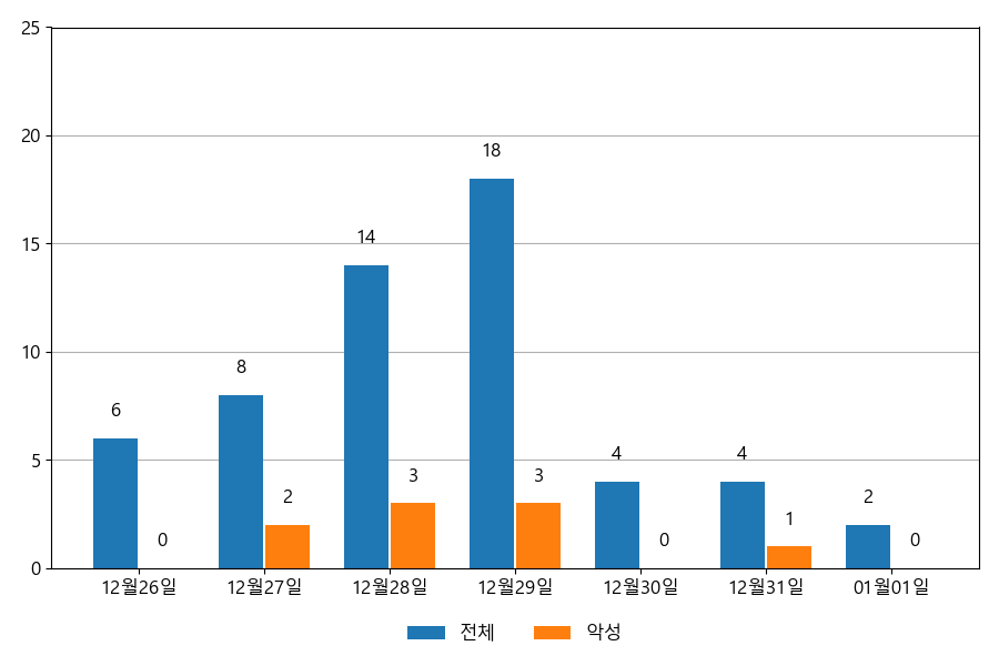 일일 유입량은 하루 최저 2건(악성 1건)에서 최대 18건(악성 3건)으로 일별 편차를 확인할 수 있습니다.