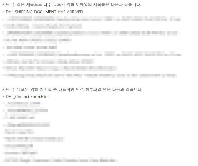 ESRC에서는 자체 운영 중인 이메일 모니터링 시스템의 데이터를 통해 이메일 중심의 공격이 어떻게 이루어지고 있는지 공유하고 있습니다. 다음은 01월 02일~01월 08일까지의 주간 통계 정보입니다.