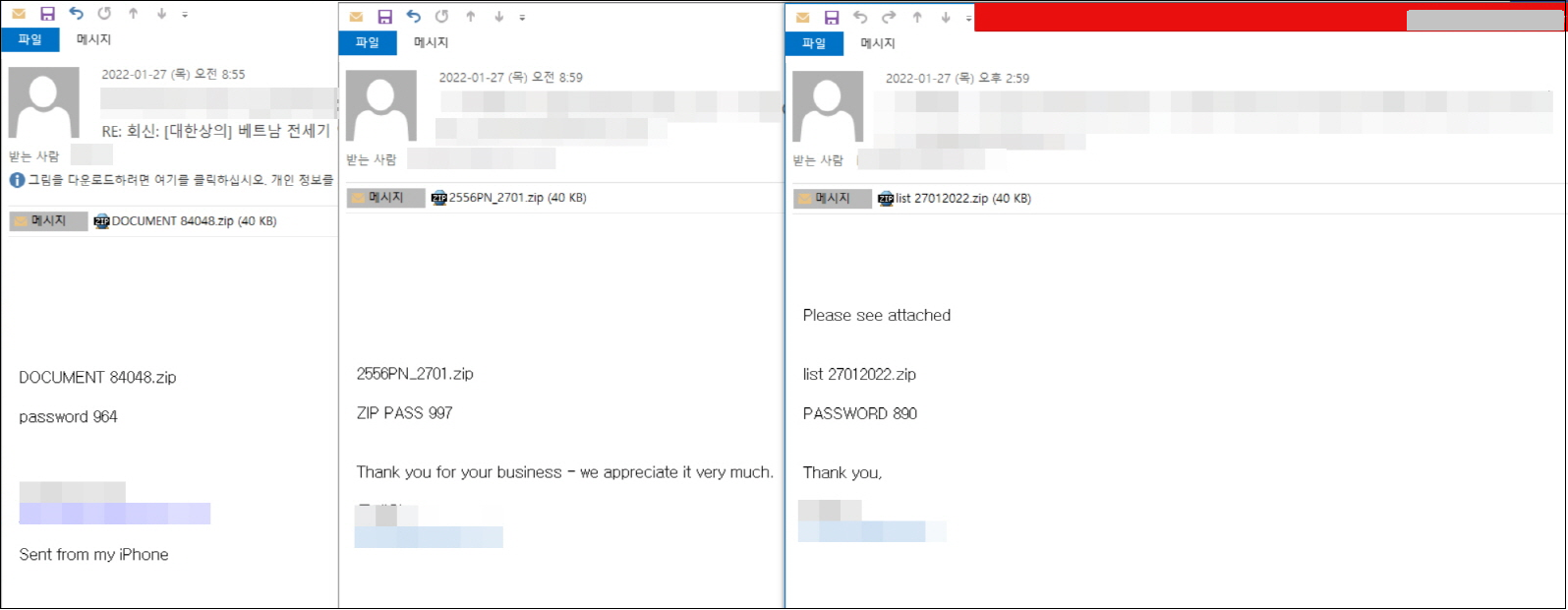 이메일에는 별다른 내용 없이 첨부되어 있는 압축파일의 패스워드만 적혀있습니다.