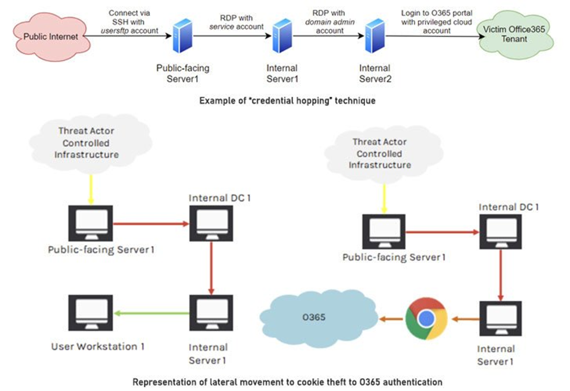 - 측면 이동을 숨기기 위한 크리덴셜 호핑(Credential hopping)
