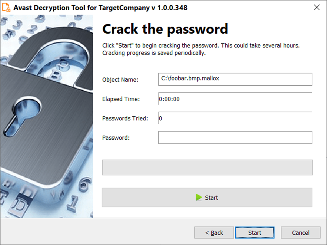 TargetCompany 랜섬웨어용 복호화 툴은 Avast의 서버에서 다운로드 가능하며, 사용자는 간단한 인터페이스를 통해 복호화 프로세스를 알아낼 수 있습니다.