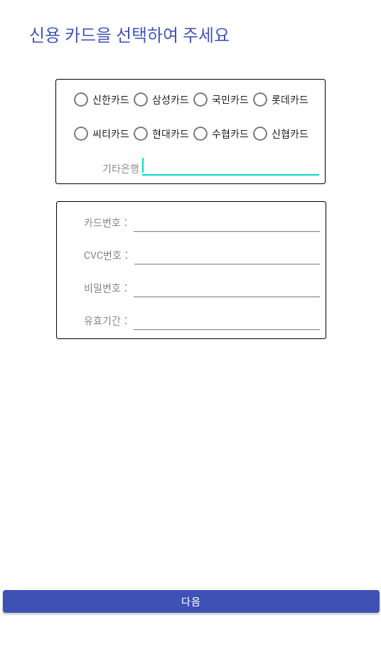 기존의 앱 다르게 신용카드 정보를 유출하는 페이지가 추가되었는데, 기존에 은행 계좌번호 및 비밀번호 수집 만으로는 별 효용이 없어 추가로 신용카드 정보를 유출하고자 시도하는 것으로 추정됩니다.