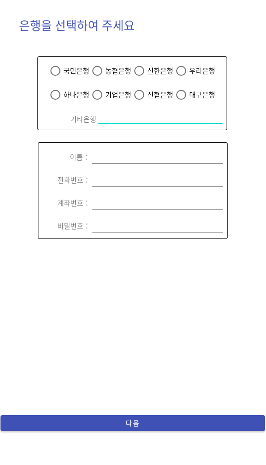 피싱 페이지에서 요구하는 휴대폰번호, 이름 및 생년월일을 입력하면 앱을 내려주는 페이지로 이동합니다.