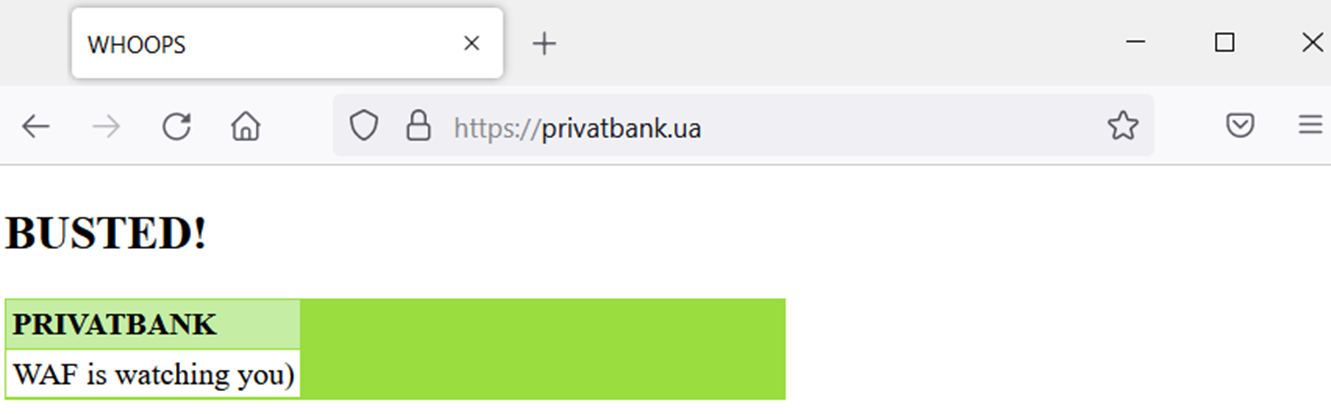 오늘 일찍 Privatbank의 사이트 또한 해킹되었으며, 공격자는 웹사이트의 콘텐츠를 제거하고 "BUSTED! PRIVATBANK WAF is watching you”라는 메시지를 추가했습니다.
