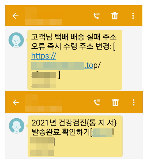 위 표를 통해 최근의 택배 스미싱은 과거보다 내용의 변화가 많지 않다는 것을 알 수 있습니다.