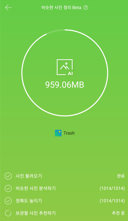 단, 백그라운드에서도 동작하는 기능이기 때문에 분석하는 동안 다른 앱을 사용하더라도, 분석이 완료되어 결과를 확인할 수 있습니다.