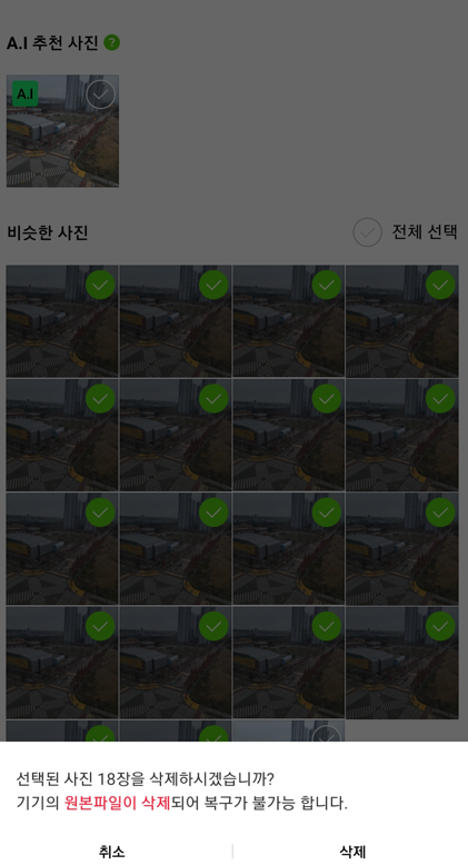 [비슷한 사진 정리] 기능은 기기의 앨범에서 비슷한 사진을 찾아 원본 파일을 지울 수 있도록 구성된 메뉴입니다. 갤러리 정리와 기기 용량 확보를 하나의 기능으로 할 수 있는 1석 2조의 찬스!