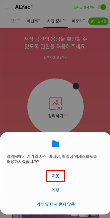 ① 기능을 이용하기 전 알약M [저장공간] 권한을 허용해주세요.