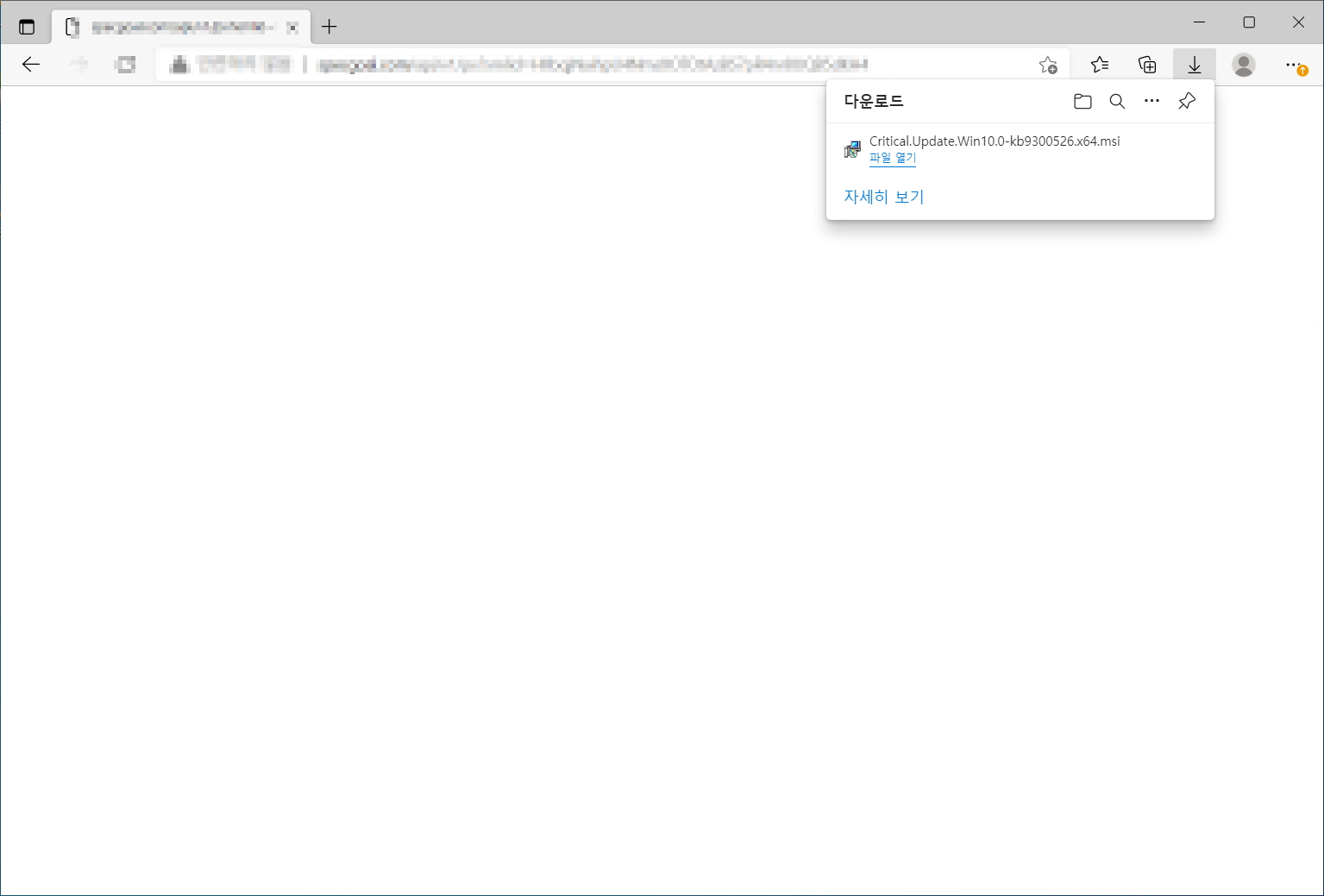 특정 페이지에 접속하려는 사용자가 url을 잘못 입력하였을 때를 노린 것으로 추정되며, 'Critical.Update.Win10.0-kb8262760.msi, Critical.Update.Win10.0-kb2385050.x64.msi, Critical.Update.Win10.0-kb9240853.msi, Win10.Update-kb8723467.msi' 파일명으로 내려주어 사용자들의 클릭을 유도합니다.