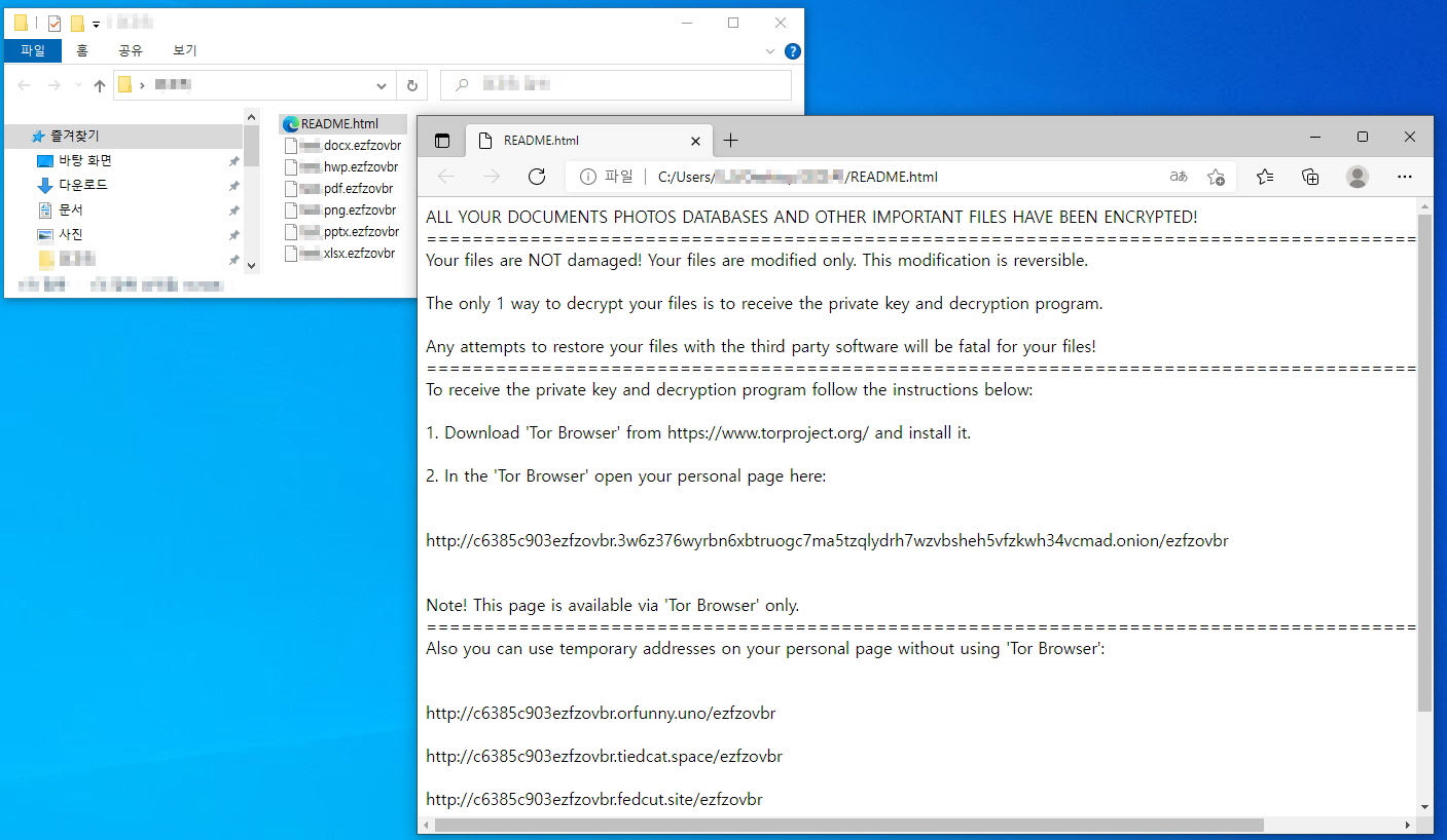 실행 후에는 '기존 파일명.czbxedz'로 변경하며, README.html 랜섬노트를 생성합니다.