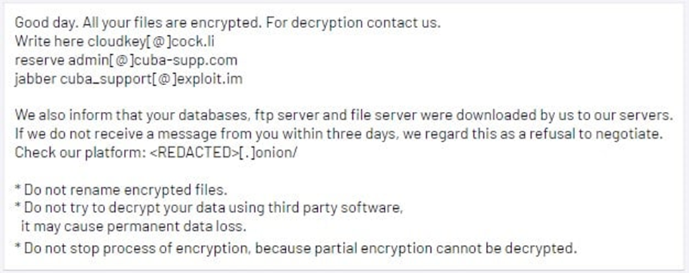 <Cuba 랜섬웨어의 랜섬노트>