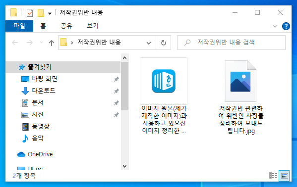 압축 파일 내에는 한글 아이콘을 위장한 실행파일과 이미지 파일이 포함되어 있습니다.