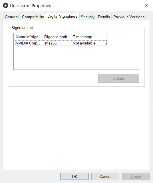 <NVIDIA 인증서로 서명된 Quasar RAT>