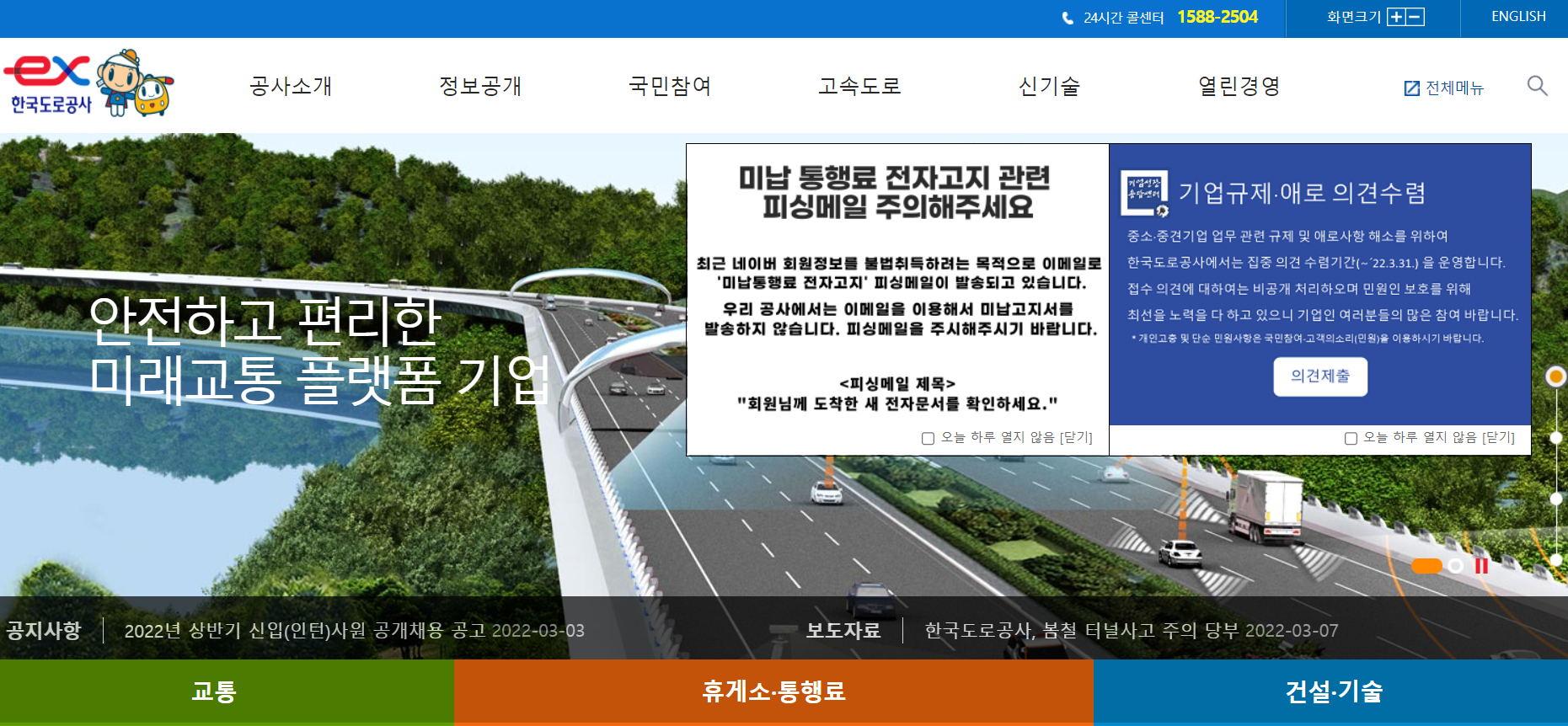 현재 한국도로공사 공식 홈페이지에도 해당 피싱메일에 대한 주의 공지가 게재되어 있습니다.